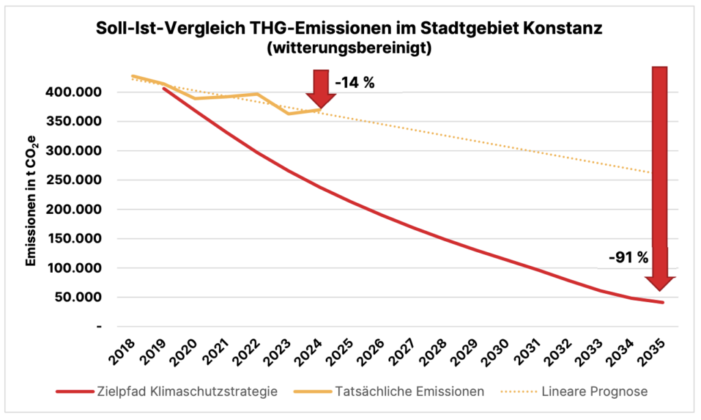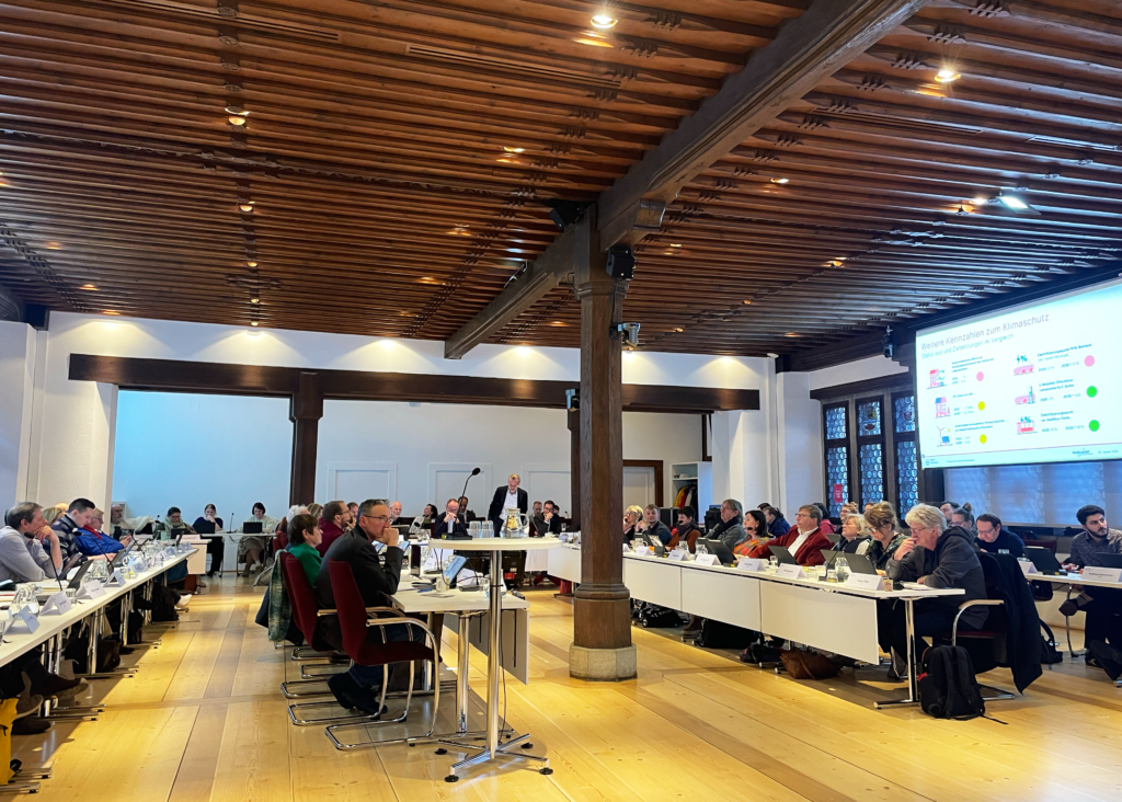 Baumgartner betonte auch die Chancen des Klimaschutzes für die Wirtschaftsentwicklung. Während die Bundesregierung für 2026 nur noch mit 1,0 Prozent realem Wirtschaftswachstum rechnet, verweist der Klimaschutzbericht auf mehr Bewegung im Bereich der Nachhaltigkeit. Die Green-Tech-Branche habe 2023 über 3,4 Millionen Menschen beschäftigt und zeige seit 2010 ein jährliches Wachstum von 4,7 Prozent. Baumgartners Fazit: „Lassen Sie uns das als Standortfaktor für Konstanz nutzen.”