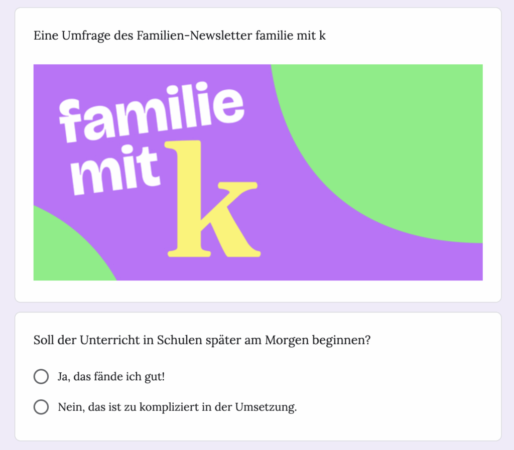 Kita, Schule, Erziehung, Pflege, Freizeit – Familienpolitik betrifft fast alle Menschen in Konstanz. Deshalb widmen wir uns diesen Themen künftig verstärkt in einem themenspezifischen Newsletter. Er heißt „familie mit k“ und erscheint einmal im Monat, immer donnerstags. Du kannst ihn hier kostenlos abonnieren.