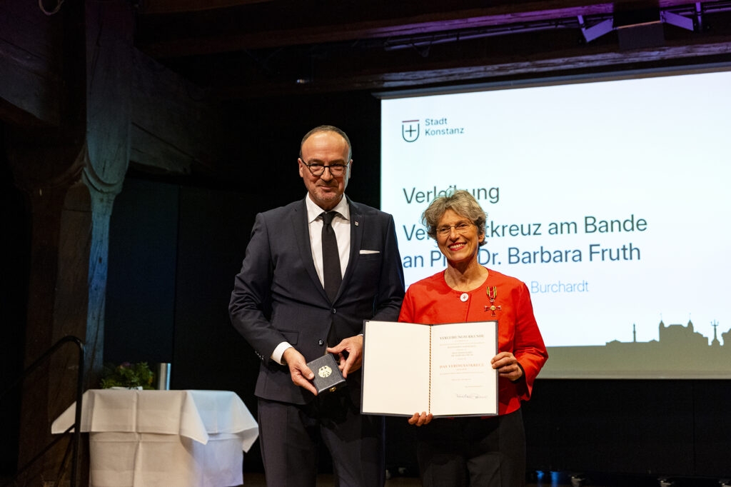 Seit 2021 arbeitet Barbara Fruth am Max-Planck-Institut für Verhaltensbiologie in Konstanz. Für ihre Forschung und ihr Engagement erhielt sie im Oktober 2025 das Bundesverdienstkreuz, überreicht vom Konstanzer Oberbuürgermeister Uli Burchardt.| Foto: zVg